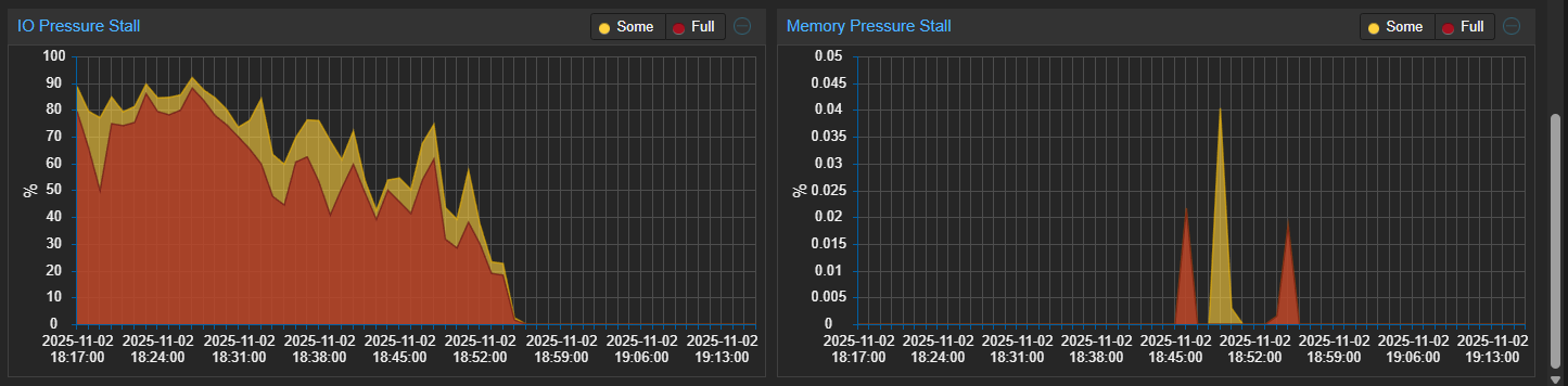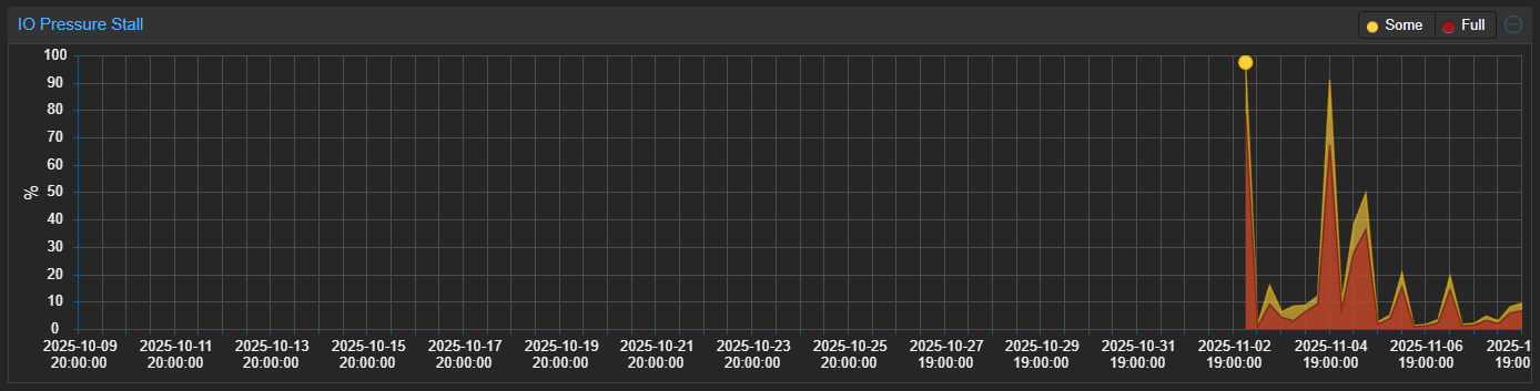 I noticed “IO Pressure Stall” increasing drastically when migrating VMs to a node running version 9 from a node running version 8: