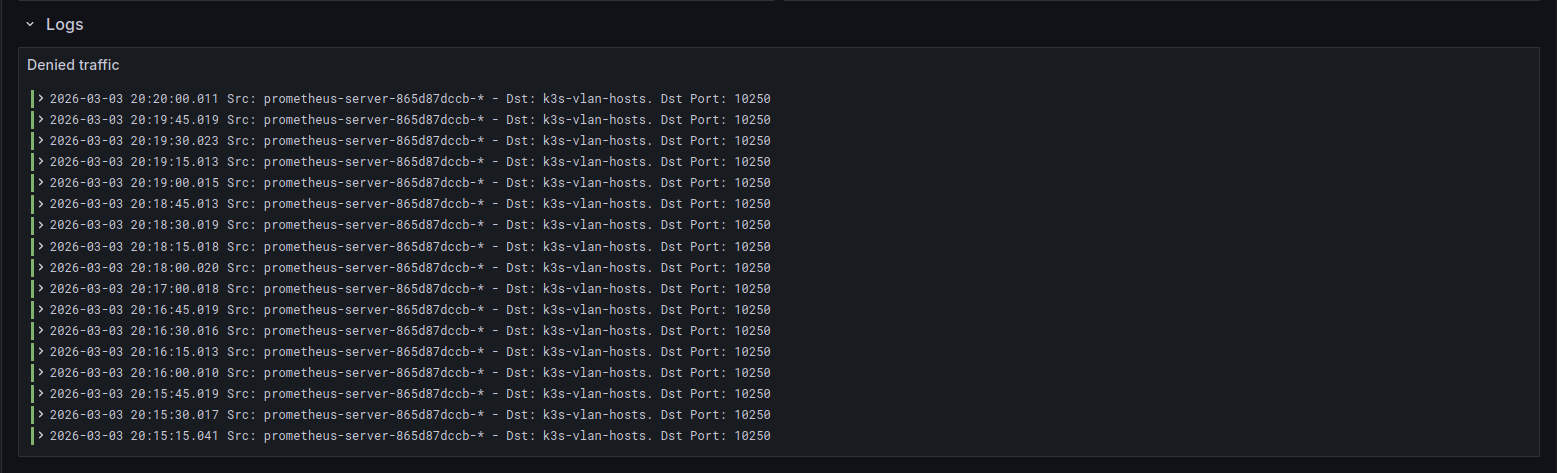 Updating the ports in the NetworkPolicy for traffic from Prometheus to the K3s VLAN fixed it: