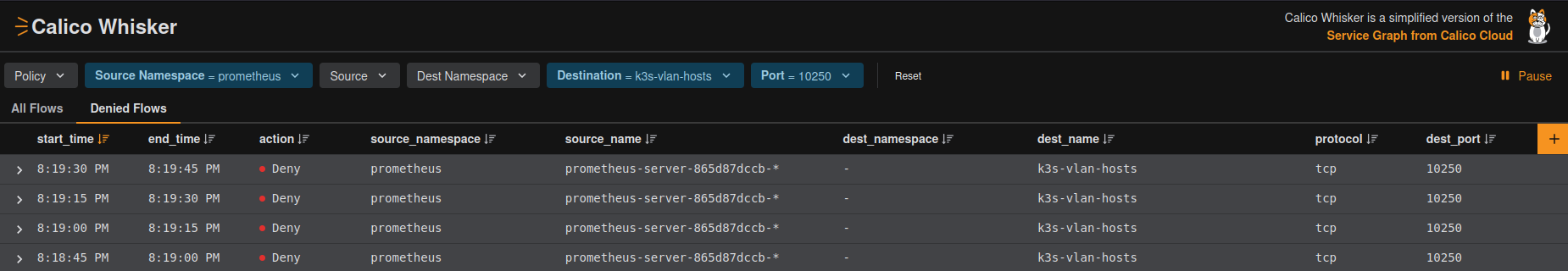 I crosschecked the traffic in Whisker and calico-flow-logs-otlphttp-exporter to identify the blocked port: